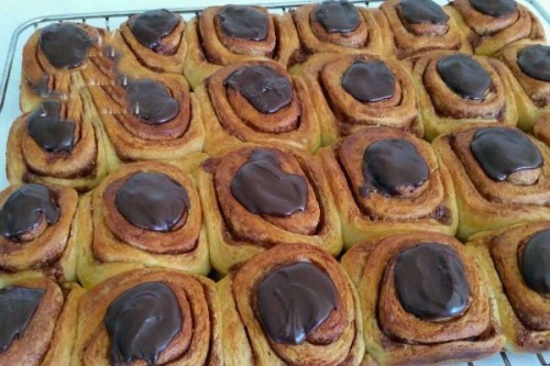 Yarım saat kadar mayalanan hamur bir tezgahın üzerine koyulur ve dikdörtgen olacak şekilde açılır. Dikdörtgen hale getirilen hamurun içerisine iç kreması dökülür ve rulo haline getirilir. Bu ruloyu istediğiniz büyüklükte eşit parçalara bölünüz.